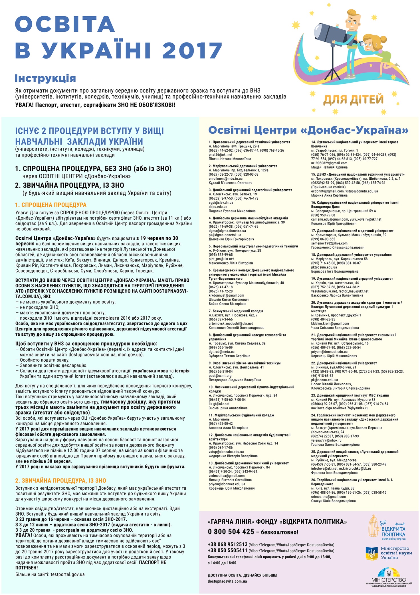Оголошення для абітурієнтів